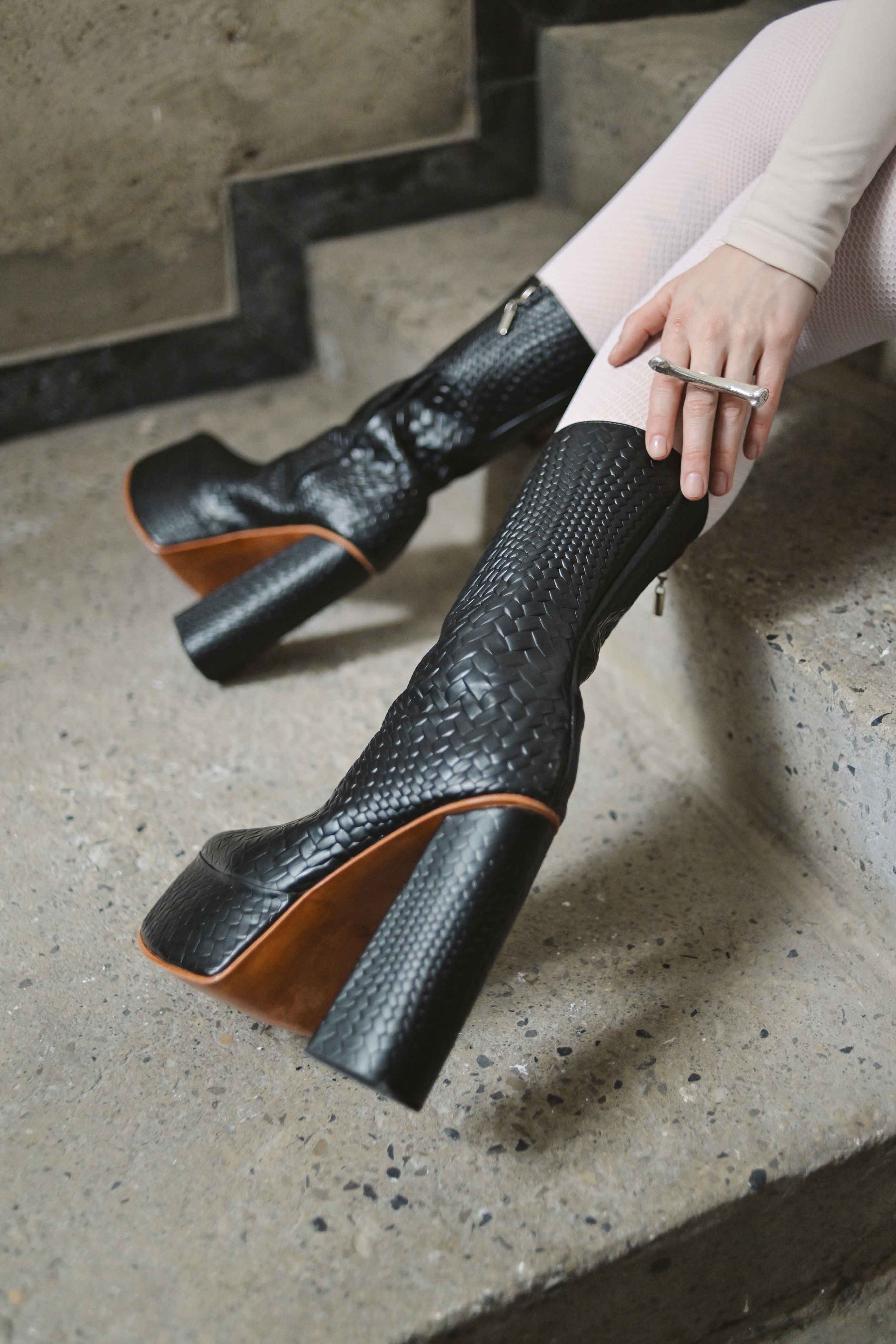 DRAPPED BLACK BOOTS